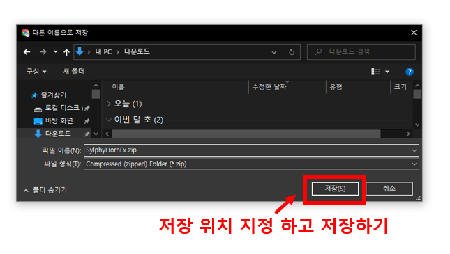 실행파일 압축폴더를 저장할 위치를 지정하고 저장 버튼을 누릅니다.