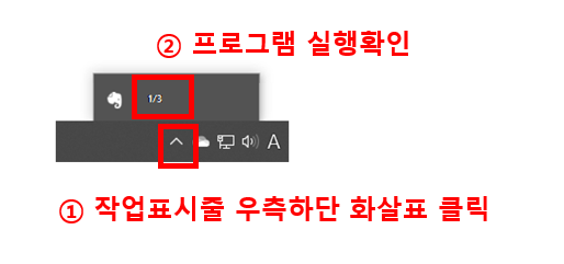 SlphyHorn이 정상적으로 실행됐는지는 작업표시줄 우측 하단에 화살표를 눌러 트레이 아이콘을 확인하면 됩니다. 트레이 아이콘을 통해 현재 가상화면이 몇 번째 화면인지를 알 수 있는데요. 트레이 아이콘에 현재 1/3이라는 표시가 보이는데요. 가상 데스크탑이 3개, 즉 가상화면이 3개가 존재하며 첫 번째 화면이 보이고 있다는 것을 보여주고 있습니다.