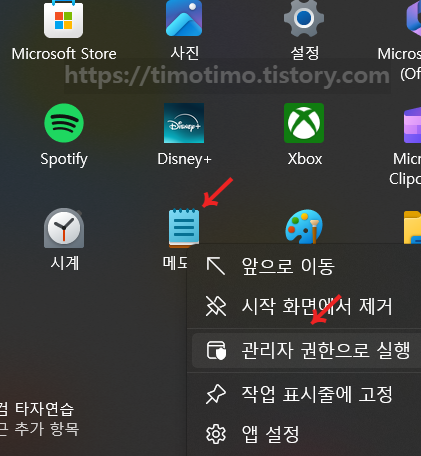메모장을 관리자 권한으로 실행합니다. host 파일은 윈도우 핵심 파일로