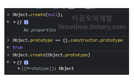 반면에 Object.create(null)로 빈 객체를 생성하게 되면 null을 prototype으로 객체를 생성하게 됩니다.