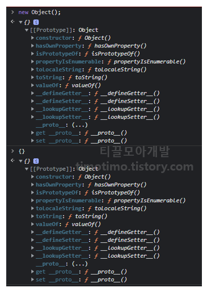 리터럴 생성과 Object 생성자, 두 방식 모두 빈 객체를 참조하고 있는 변수가 Object.prototype을 상속받습니다.