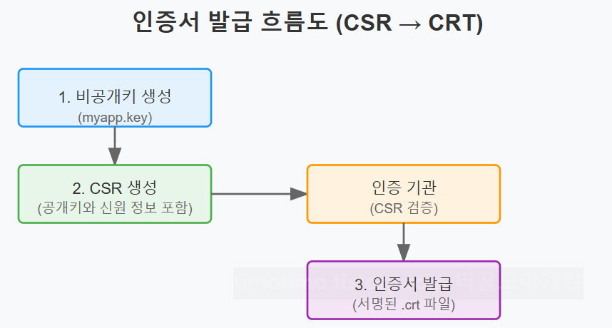 아래 다이어그램은 인증서 요청과 발급 흐름을 한눈에 보여준다: