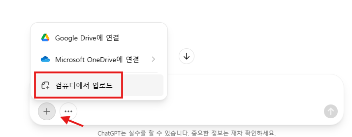 먼저 챗GPT 웹사이트나 앱에서 사진을 업로드한다. 화면 왼쪽 아래 '+' 버튼을 누르면 쉽게 올릴 수 있다.