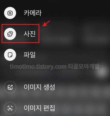 갤러리에 있는 사진을 불러오려면 사진 버튼을 누릅니다.