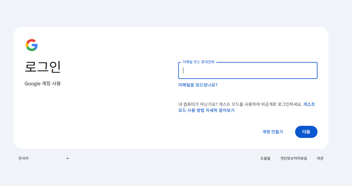 NotebookLM은 구글 서비스이기 때문에 구글 계정이 필요하다.