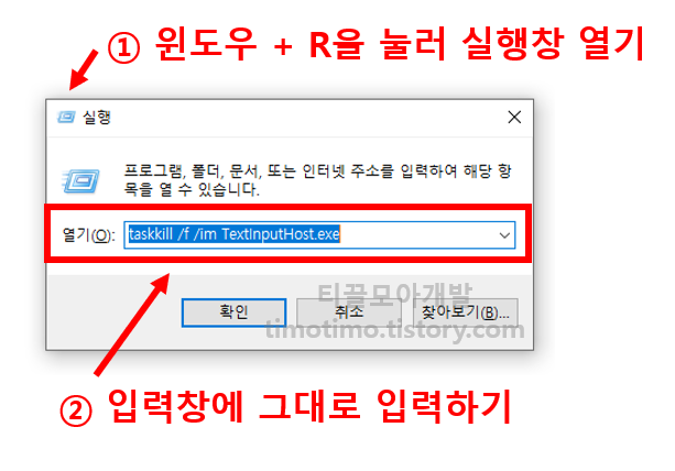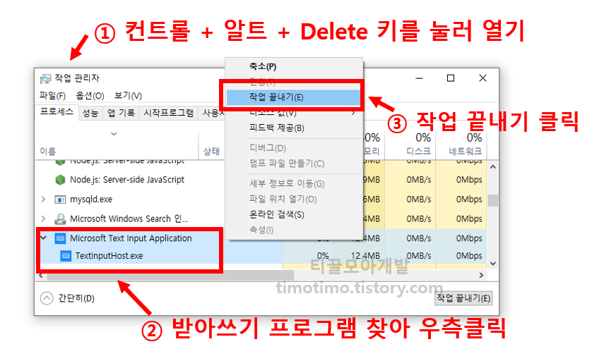 2. 작업관리자를 열어 TextInputHost.exe를 강제종료하기