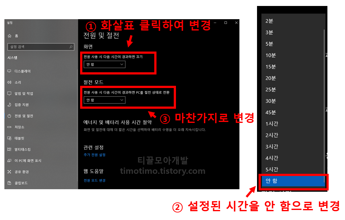 2. 화면, 절전 모드 변경하기