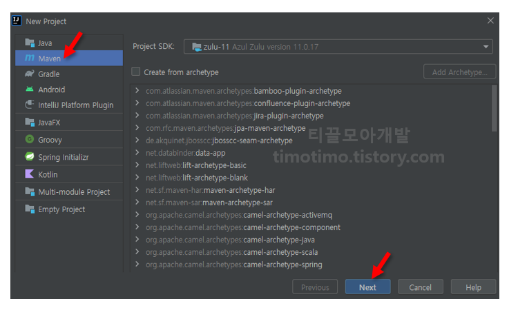 인텔리제이 File 탭에서 새로운 Maven 프로젝트를 생성합니다.