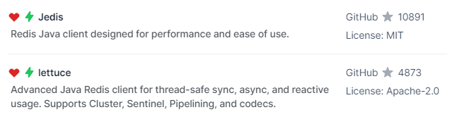 자바 레디스 클라이언트는 대표적으로 Lettuce와 Jedis가 있다.